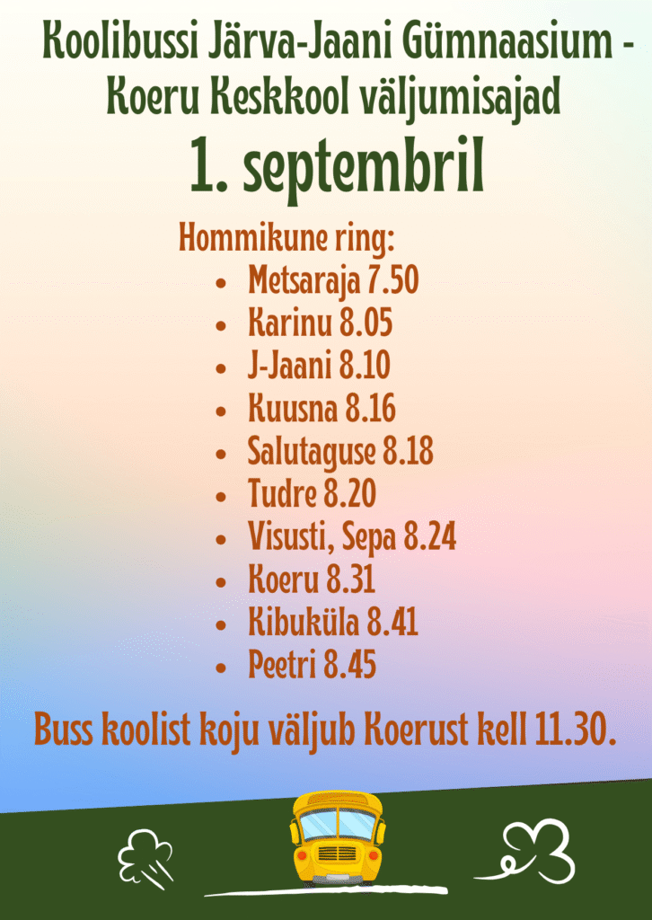 Koolibussi väljumisajad 1. septembril