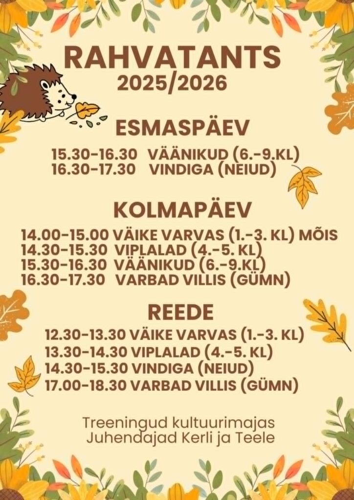 đđș Rahvatantsu trennid on alanud!Treeninguajad on paigas, kuid huvilised on endiselt oodatud liituma: âš Neiud rĂŒhma Vindigaâš Poisid rĂŒhma VÀÀnikud đ Treeningud toimuvad kultuurimajasđ©âđ« Juhendajad: Kerli ja Teele Tule tantsima ja saa osa rÔÔmsast tantsuperest! đż